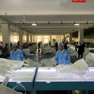 All our bag designs are certified by international laboratories and our in house testing is well equipped with machines like weatherometer from QUV, USA , Test rig for safety factor checking, metal detector and bag cleaning machine.