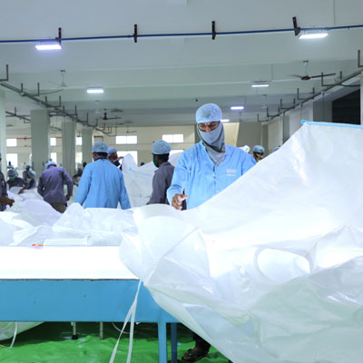 Our fully Integrated World Class FIBC Facility with a capacity to produce 5 Million FIBC’s per annum is equipped with fully automatic extrusion lines and circular looms from the world’s best manufacturers. All our looms in FIBC section are from Starlinger and they are all fully ceramic version. This means we have the lowest loss of strength in weaving and this means we have much better strength for a given GSM in the fabric.